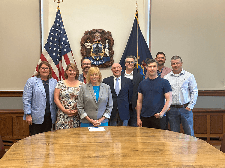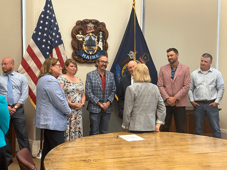 Several CannabisME Board Members pose with Governor Janet Mills at the signing ceremony for LD1063, which allows adult use cannabis businesses to deduct ordinary business expenses.